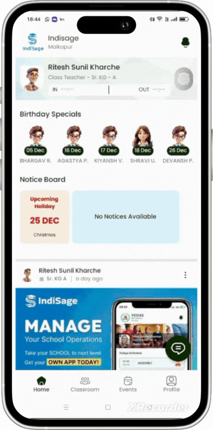 Easily record student attendance with a user-friendly interface. Mark attendance daily, class-wise, or for specific sessions, ensuring accuracy and convenience. Track participation trends and generate reports for better academic management. This feature ensures streamlined record-keeping and fosters accountability while enhancing communication between teachers, administrators, and parents.